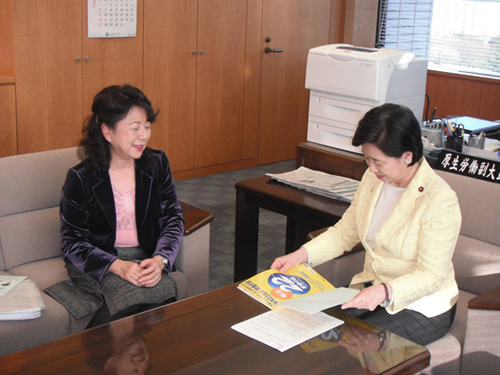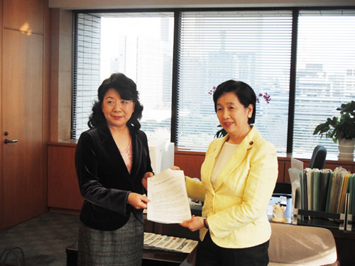 「建物内を全面禁煙とする労働安全衛生法の改訂に関する要望書」をシンポジウムで作成し、2月23日、厚生労働副大臣、小宮山洋子議員に齋藤麗子先生より手渡しされました。 |