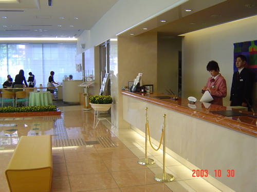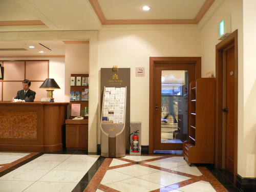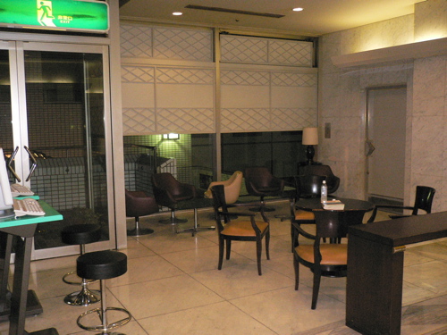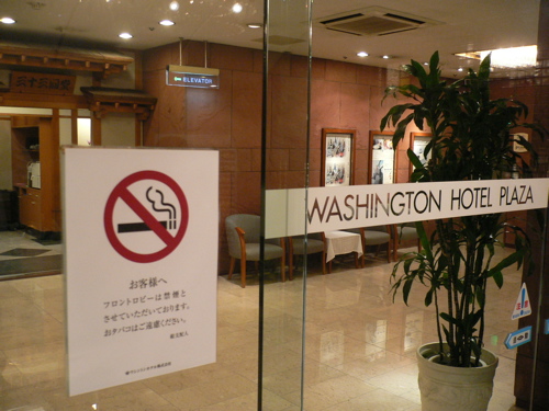 ホテル日航プリンセス京都 フロントは右手の喫煙室以外に灰皿はありません。 ドアの下の隙間を大きくして空気の取入口を確保。隣接するレストランも終日禁煙。フロント全体に対して1点。 |