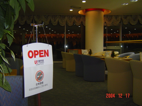 フロントに連続するベンチやソファにも灰皿がないこと。 かつてはこの場所に灰皿がありましたが、2006年前半で撤去されました。 |