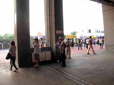 | 等々力陸上競技場 | メインコンコースのみ確認(アウェイのサポーターはバックスタンド侵入不可)。屋根が低くコンコースの幅も狭いので、ハーフタイムは人も煙も一杯。情報:「しょう」さん 06年9月 | ![]() |