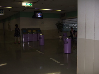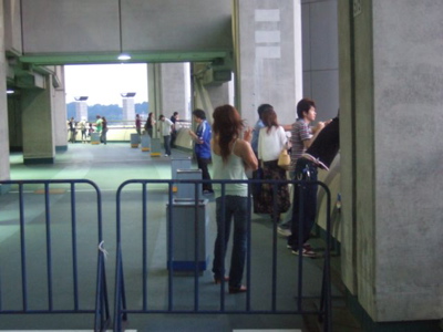 自由席側で、いわゆる廊下・階段のところ。 白線のみ、 排気装置無し。 情報提供: 「S」さん 06年8月 |