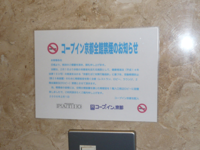 ロビーの喫煙室以外の公共空間は全面禁煙