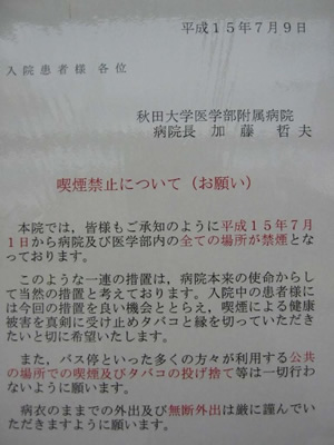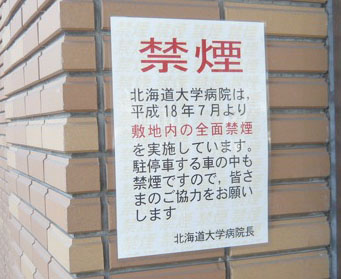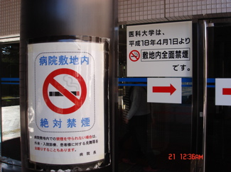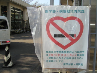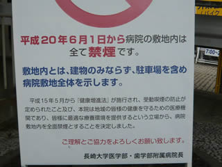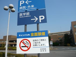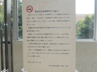 医学部における敷地内禁煙化の写真集 (325ピクセル)2011年1月24日更新。