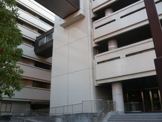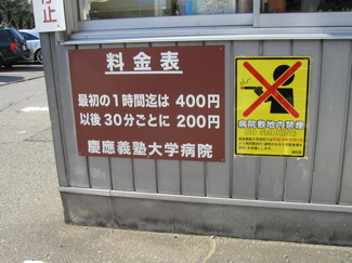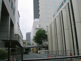 東海大学、左は病院、右は医学部。医学部の1階に喫煙コーナー。病院からは「敷地内禁煙」の自己申告ですが・・。 |