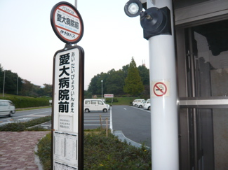 大学病院前のバス停での違反喫煙も厳禁→ |