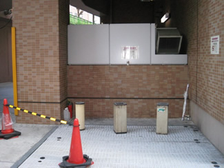 渡り廊下の下が喫煙コーナーになっております (情報:匿名、07年7月) |