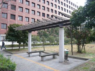 左は大学病院(敷地内禁煙)、右は東京大学の喫煙所。 |