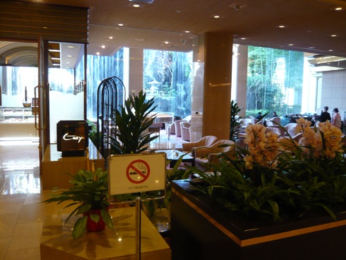ANAホテル 左に見えるカフェレストラン コージーも終日全席禁煙。 右側に広がるティー&カクテル コトラウンジも終日全席禁煙。 |
