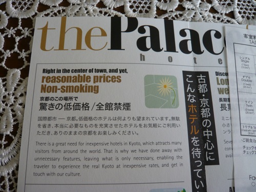 京都全日空ホテル: この2年間でもっとも受動喫煙対策を推進したホテル。 当初よりロビーには灰皿がなかったが、奥に見えるラウンジの一部が喫煙席であったため、フロント全体がわずかにタバコ臭かった。しかし、今ではタバコ臭ゼロ。 |