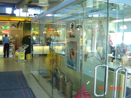 モスバーガー 小倉店 ガラスの仕切で分離された喫煙席 |