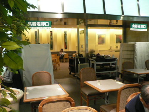 同上 喫煙席側からみた禁煙席(壁の向こう側)。 通り道は2カ所。 |