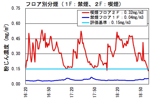 1階が禁煙フロア、2階が喫煙フロアならばグラフのように空間分煙が成り立ちます。