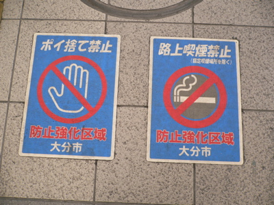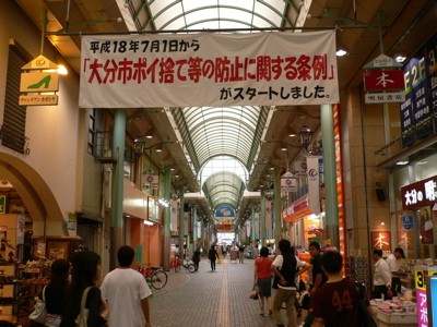 大分市中心部 アーケード部分ももちろん禁煙。早い時間だったせいか、一人の違反者も見かけませんでした。 情報:大和 |
